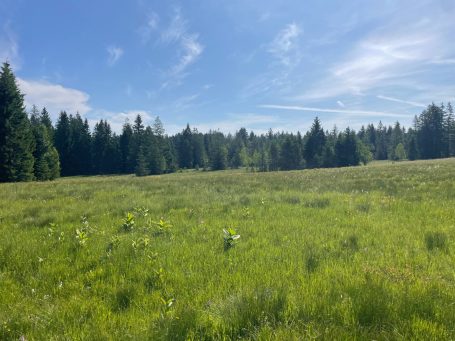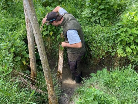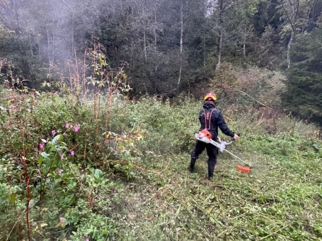 Erstpflege zur Herstellung eines bewirtschaftbaren Zustandes einer Brachfläche an einem Bach, welche durch die Anwesenheit des Bibers stark vernässt wurde und somit nicht mehr bewirtschaftbar war.